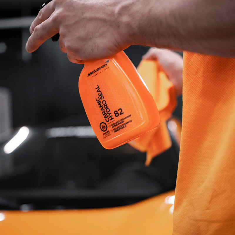 McLaren Ceramic Hydro Seal combina moléculas de Si02 y Si04 que ofrecen una capa extremadamente hidrofóbica que tiene las mejores propiedades para encapsular agua y otorgar un acabado de alto brillo. Este producto está formulado para brindar una durabilidad de hasta 6 meses con una sola aplicación.