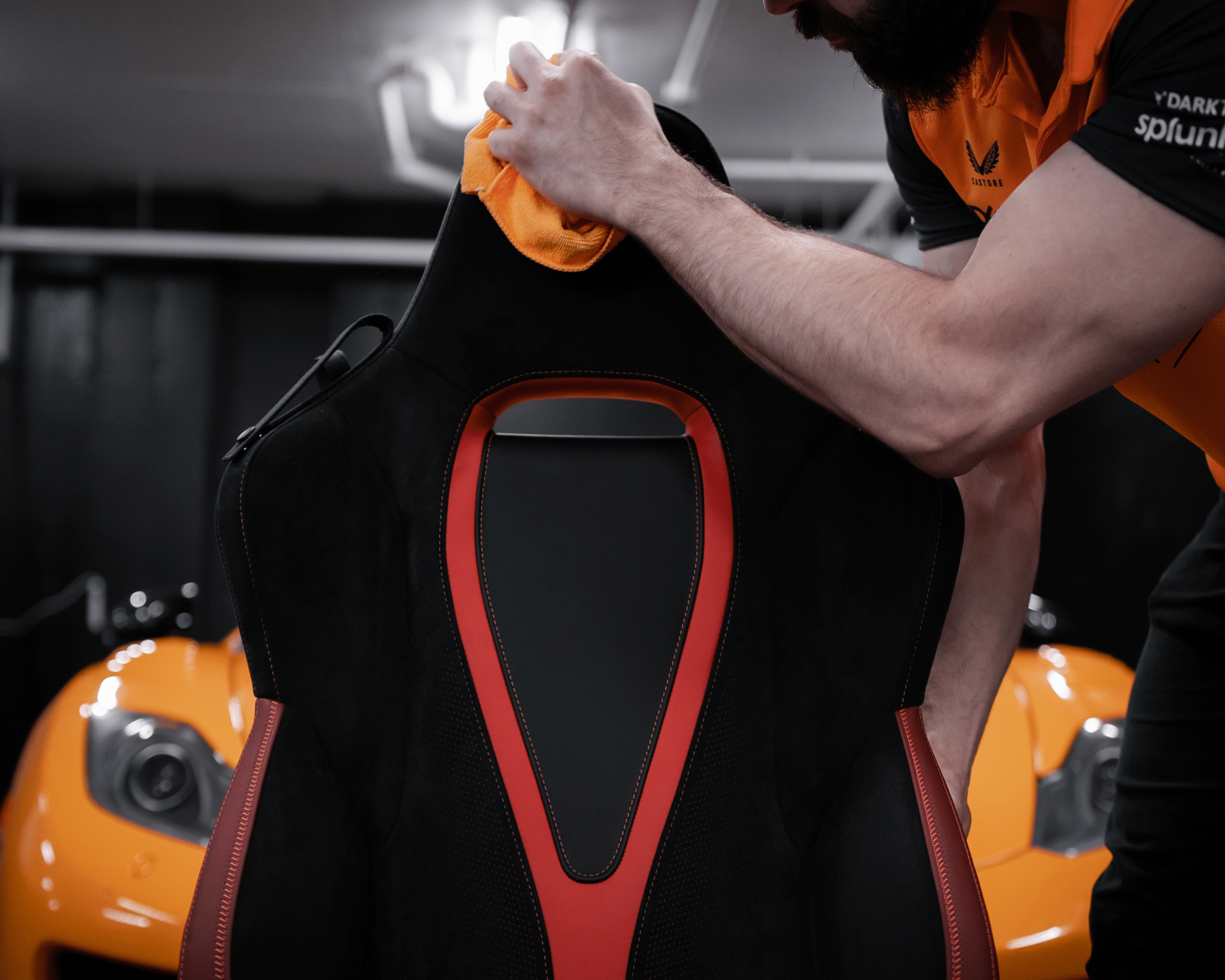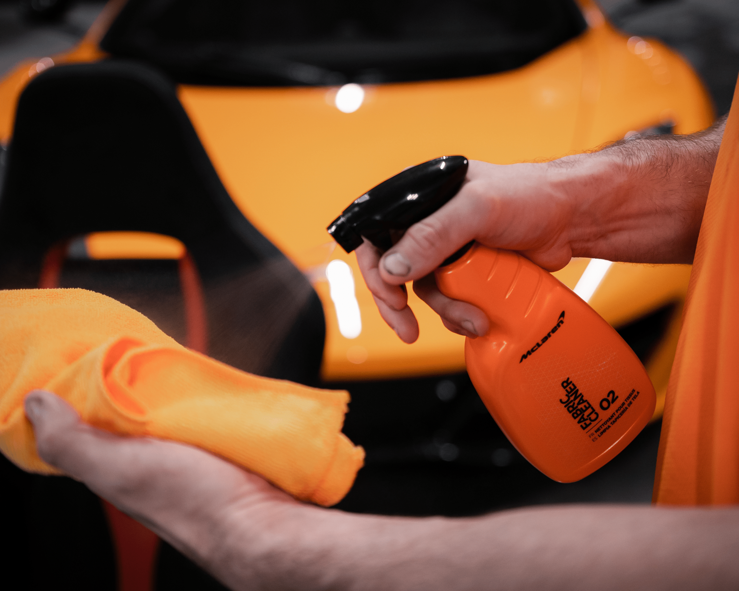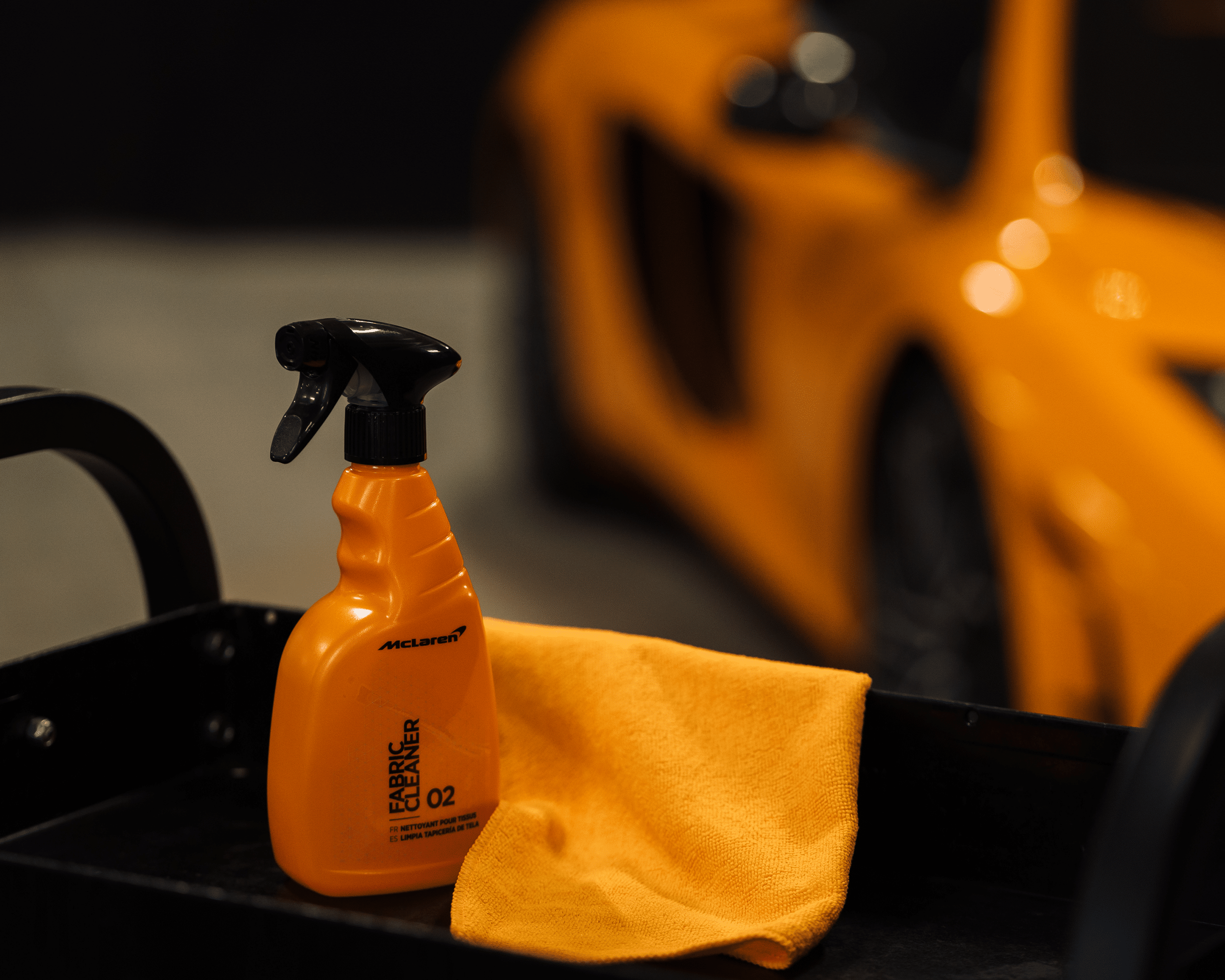 McLaren Fabric Cleaner está formulado para ayudar a disolver y eliminar la suciedad, los olores y las manchas en alfombras y asientos de tela de automóviles.