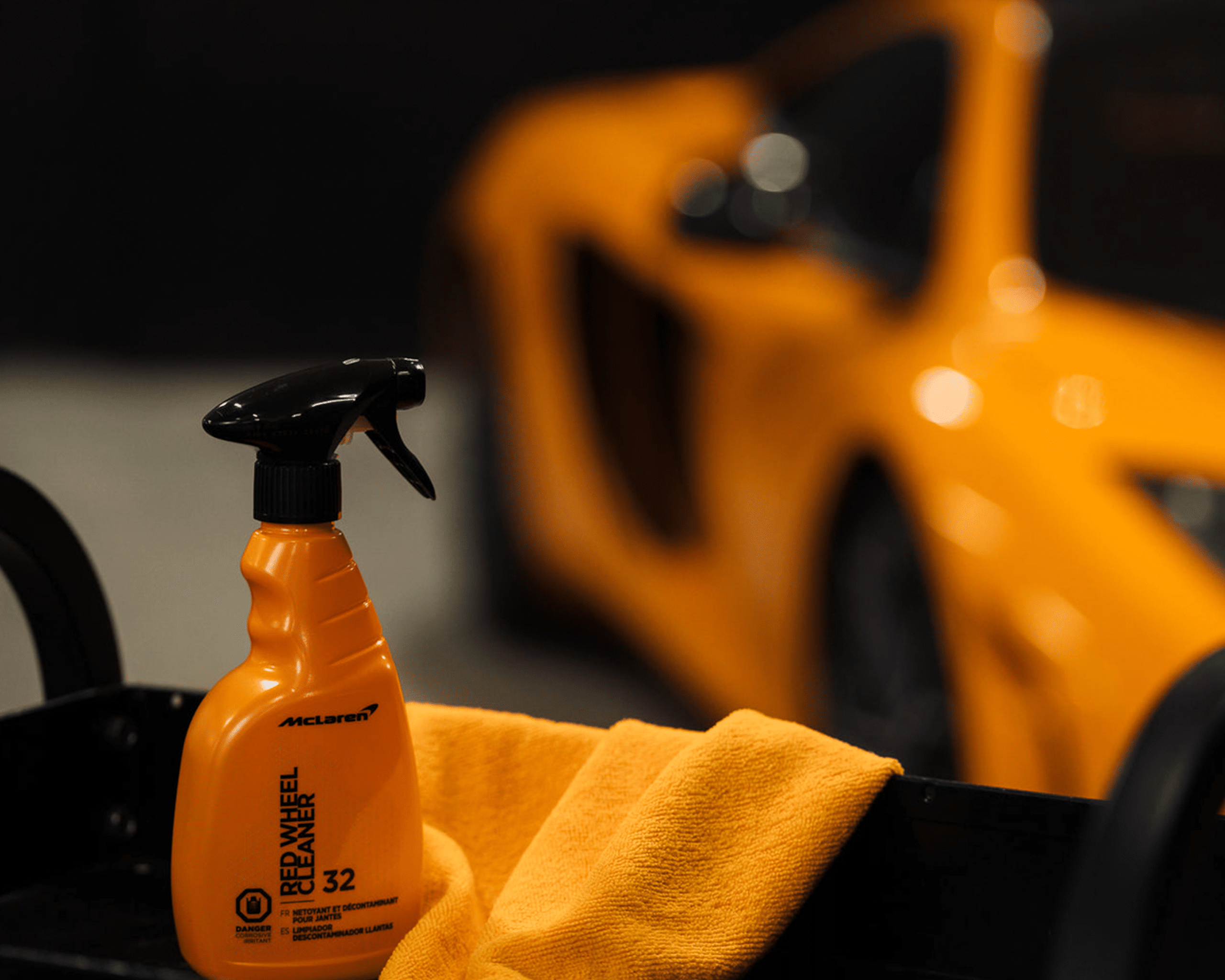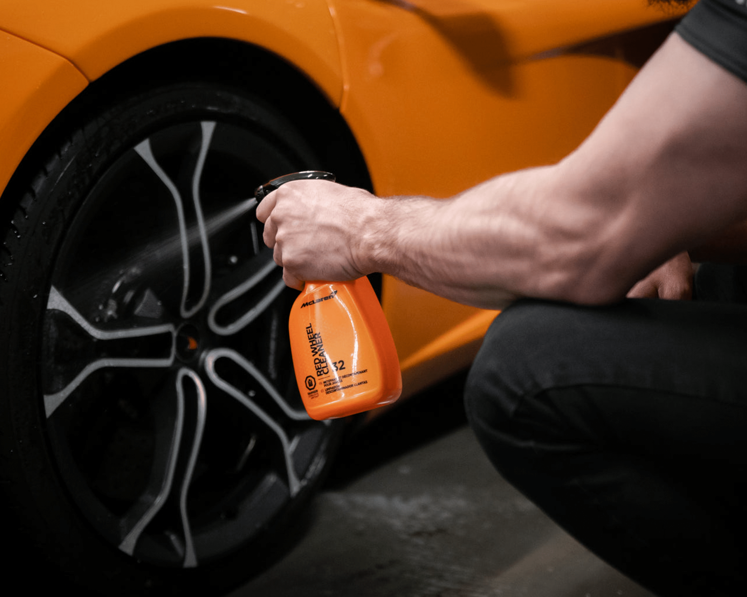 El McLaren Red Wheel Cleaner es imprescindible para cualquier entusiasta de los automóviles. Elimina fácilmente el polvo de los frenos y la suciedad de los rines. Nuestra fórmula de cambio de color de alto rendimiento lo guiará cuando llegue el momento de enjuagar el producto de sus rines. Simplemente espere a que el producto se ponga rojo y luego lávelo inmediatamente.